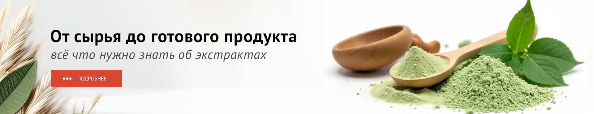 Экстракты классифицируют по консистенции: сухие (влажность менее 5%), густые (до 25% влаги) и жидкие, встречаются формы - эфирные масла из растительного сырья, со2 и водно-глицериновые экстракты. Их получают методом экстракции – однократной, многократной или непрерывной (перколяция). Эти натуральные концентраты содержат вещества, активные компоненты из растений, ягод и трав. Наше основное направление - порошковые экстракты.